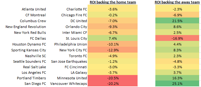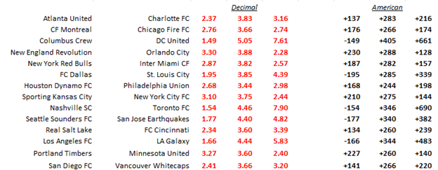 My favourite bet is Minnesota this weekend. Vancouver look good as well although late money often opposes them. They rate well this season but it’s a bit surprising they rate as well as they do (no Ryan Gauld and they weren’t this good last season.)